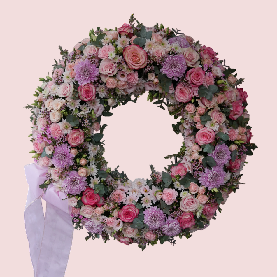Trauerkranz „Zarte Erinnerung“ – Pastellfarben / Rosa