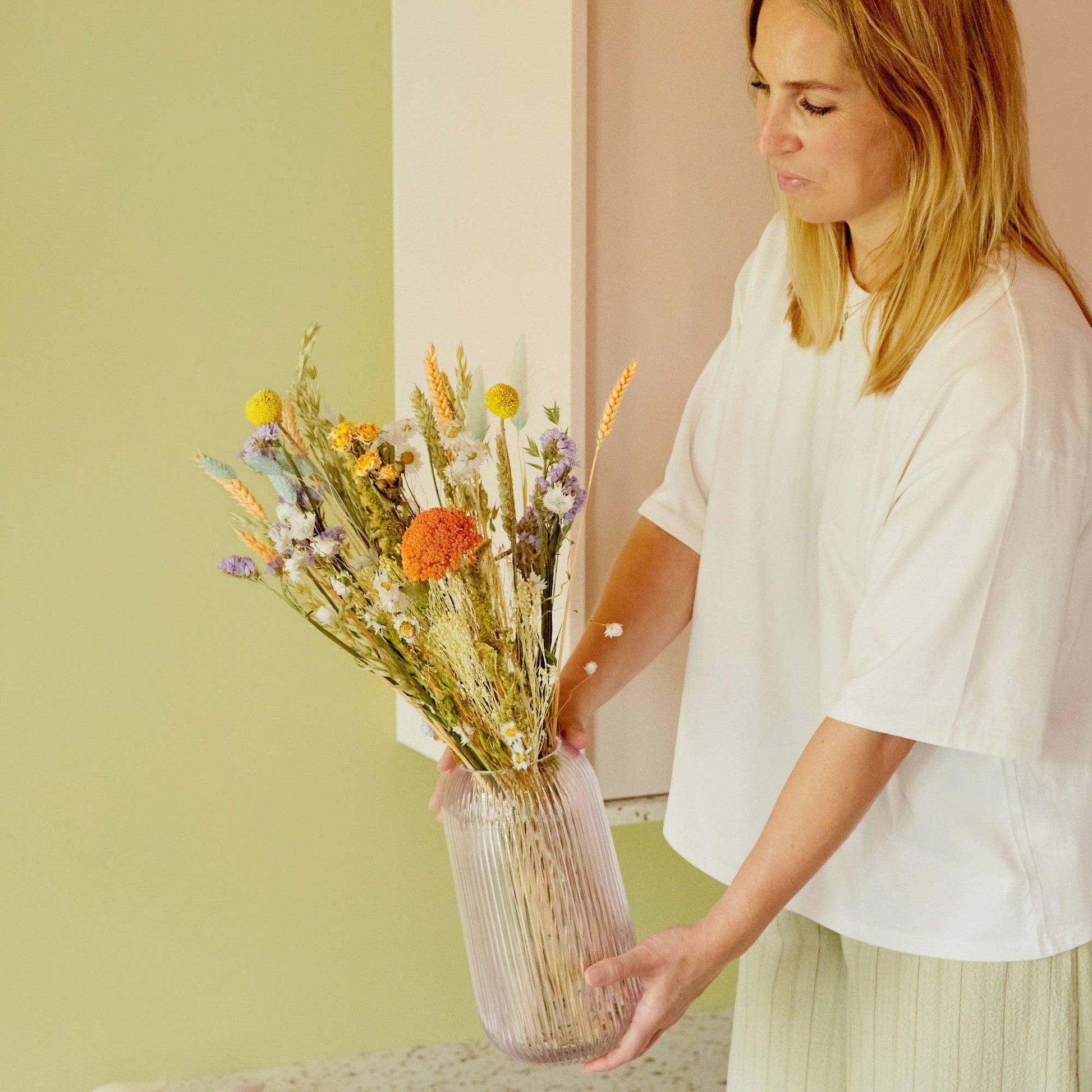Bitte beachten: Trockenblumen sind saisonale und natürliche Produkte. Jeder Strauß kann in Farbe und Zusammensetzung leicht variieren, wodurch jedes Stück einzigartig ist.